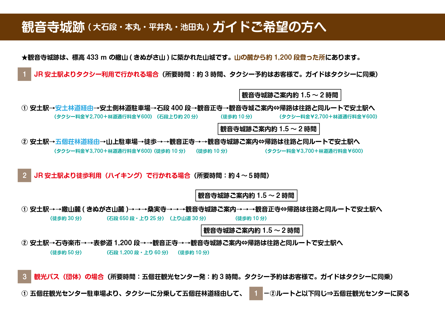 ■案内途中の事故や怪我については、その責任は負いかねます。お客様側で充分お気をつけてくださいますようお願いいたします。
